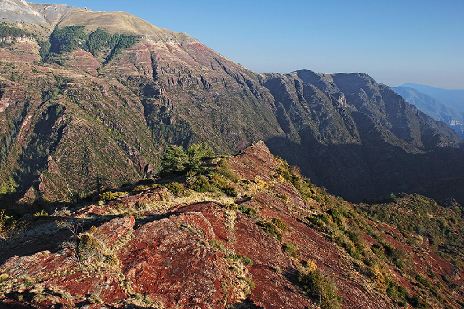 Le “Colorado niçois”, c’est le nom des sublimes gorges parallèles que le Var et le Cians ont taillés dans les parois de schiste rouge.