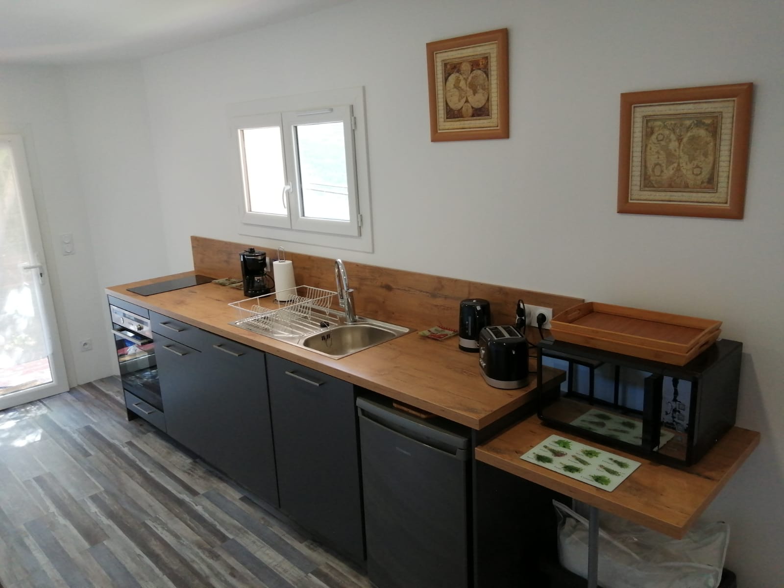 Le studio est situé au rez-de-jardin de la maison, accessible uniquement par un escalier.